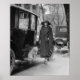Foto antiga de mulher vestindo vestidos e chapéus no estilo 1920, com um carro branco e um carro antigo na West Highland.