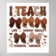 Eu Ensino Poster de Arco de A imagem contém o texto "I TEACH" no topo, com cada letra numa forma diferente de castanho. Há duas margaridas e várias formas cardíacas ao redor do texto. Abaixo do texto, há seis arcos, cada um em diferentes tons de marrom, com coração no centro de cada arco. Cada arco é rotulado com uma palavra por baixo.