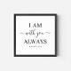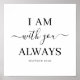 Esta design moderna apresenta o verso bíblia "Eu estou sempre contigo." Mateus 28:20 na elegante serifa preta e fonte de script, num fundo branco. O texto é personalizável.