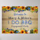 Este cartaz rústico de festa de noivado "EU FAÇO CHURRASCO" ajudará a dar boas-vindas aos seus entes queridos na sua festa de noivado. Este lindo cartaz de boas-vindas de festa de noivado com tema de madeira de celeiro rústico apresenta uma madeira de cor clara com uma fileira de lindos girassóis boho e penas azuis na parte superior e inferior do cartaz de boas-vindas à festa de noivado. Personalize com os seus primeiros nomes para um charme country boho lindo. Outras fontes e cores estão disponíveis.