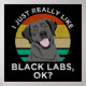 Eu Gosto Muito De Laboratórios Pretos, OK? Este cúmplice engraçado e fofo labrador negro labrador, o amante do cachorro, é um presente perfeito para homens, mulheres, adolescentes e crianças que possuem e adoram um cão de laboratório negro. Se você é o orgulhoso dono de um labrador preto de animais de estimação e você ama laboratórios e cachorros negros, este design é para você! Inclui um desenho animado de um labrador recuperado contra um fundo solar retrô angustiado.