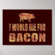 Imagem de um porco e legenda "Eu morreria por bacon" O porco e o texto têm uma aparência de "Bacon".