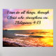 Encoraje todos com sua forte fé e crença no amor e paz de Jesus Cristo com esta inspiradora cena oceânica Philippians 4:13 poster do site www.zazzle.com/PostersofHope. Posso fazer tudo através de Cristos que me fortalece. Este tranquilo design das 16h13 fará um presente precioso ao abençoar aquele especial que ama Jesus e ler a bíblia. Partilhe com todo aquele Cristo de Jesus é o Senhor do seu coração e o guardião da sua alma. Aproveite esta foto pitoresca do oceano que é pacífica, cheia de espírito e serena. Que bela maneira de compartilhar o amor de Jesus Cristo.
