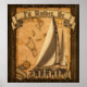 Eu Preferencialmente a velejar poster para marinheiros e entusiastas à vela. Mapa náutico estilo antigo das Baamas com rosa de bússola, veleiro, faixa de fita e fundo de madeira antigo.