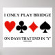 Jogadores de ponte avid e proprietários de clubes de pontes gostarão desse poster com quatro naipes de cartas, juntamente com o ditado "Eu só toco ponte nos dias que terminam em Y".