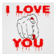 Eu te amo escrevendo com letras vermelhas que pingam sangue e um desenho de linha de uma mão feminina com um dedo indicador apontando para o espectador. Por diversão e Halloween
