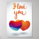 Ilustração com dois corações coloridos e mensagem "Eu te amo". Arte digital