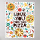 Poster Eu te amo mais que pizza. Inscrição em comida ital