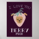 Adorável arte de parede com um cachorro filhote com cabeça de morango. O texto diz “Eu te amo muito”. É um design de trocadilho engraçado e doce para o quarto do bebê ou da criança.
