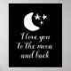 Amo-te à lua e ao poster preto do quadro negro. Pintura romântica de estrelas da lua negra e branca com mensagem manuscrita personalizada, dizendo, poema ou citação. tipografia de escrita manual com na moda. Design Vintage. Bela ideia de presente de Dia de os namorados, esposa, noiva, casal etc. Decoração elegante para quarto ou parede da sala.