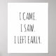 "Eu vim. Eu vi. Saí cedo." Engraçada citação de trabalho/escola para posters. Pode ser personalizado. sagetypo