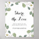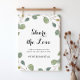 Essa caligrafia de eucalipto compartilha o sinal de hashtag de amor é perfeito para um casamento ou chá de panela rústico. A design apresenta galhos e folhas de eucalipto verde botânico desenhados à mão. Personalize a placa com a hashtag de casamento.