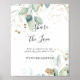 Esse eucalipto dourado compartilha o sinal de hashtag de amor é perfeito para um casamento ou chá de panela rústico. Este design artístico apresenta a aquarela desenhada à mão, ouro e folhagem verde, inspirando beleza natural. Personalize a placa com a hashtag de casamento.