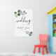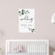 Simples e elegante sinal de casamento de folhagem de eucalipto verde.