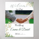Welcome your loved ones on your special day with this elegant and airy Wedding Poster. Featuring delicate white wildflowers, soft eucalyptus greenery, and classic cursive typography, this design perfectly sets a romantic tone for a garden, forest, or rustic-chic wedding. Fully customizable with your photo, names and date.