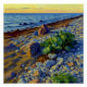 This painting captures the distinctive evening atmosphere of Vormsi’s coast, where sea, sky, and stony shoreline meet in harmony. The warm light of sunset contrasts with the cool tones of rocks and greenery, creating a tranquil, grounded composition. Part of the "Vormsi" series, this artwork emphasizes the serene beauty of Estonia's lesser-known island landscapes.