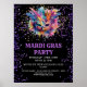 Poster de evento personalizável do Mardi Gras. Apresentando uma máscara de mascarada Mardi Gras colorida e impressão de brilho falso em um fundo preto.