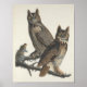 Duas corujas de excelente em um galho vintage, ilustração da história natural. Os seus olhos intensos e assustadores vão segui-lo.