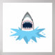 Um desenho bonito de um tubarão branco excelente saltando das ondas com suas mandíbulas dentadas bem abertas.