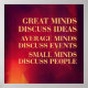 Mentes de excelente Discutem Ideias Médias Discutem Eventos Pequenas Mentes Discutir Pessoas O Modelo usa 4800x4800px, pode redimensionar em um Tamanho e Preço menores, basta escolher as opções de tamanho Ou você está procurando citações inspiracionais para motivação de funcionarios, ou apenas citações motivacionais, frases inspiradoras para aumentar a motivação de funcionarios no escritório, a Poster de Cotação é o caminho a seguir. A loja está cheia de posters de citações inspiradoras e não é apenas poster, há ipad, iphone, bolsas de laptop para se motivar tanto pelo seu funcionarios como apenas você como um indivíduo incrível que está procurando motivações.