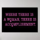 Em texto cor-de-rosa lê-se: "Onde há uma Mulher, há Realização." Os O's na citação são, na verdade, o sinal para a Mulher.