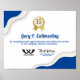 Certificado universal para aniversários de marcos de seus funcionários, com cantos ondulados modernos em sua escolha de esquema de cores, selo de ouro falso ou emblema; basta adicionar seu texto, logotipo e carregar uma assinatura ou excluir e gravar mais tarde.