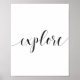 "Explorar" impressão de citação inspiracional da caligrafia. Poster de arte de palavra imprimível em preto e branco. Excelente para decoração em casa ou presente de amante itinerante, presente para ele.