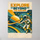 The blocky sans-serif typography anchors the composition with confidence, reinforcing the message of discovery and pushing past boundaries—both physical and imaginative. Perfect for space enthusiasts, retro design lovers, and anyone drawn to the romance of exploration, this poster adds character, nostalgia, and bold visual impact to studios, offices, or creative spaces.
