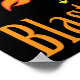 Uma fogueira divertida voando pelas estrelas, com o texto "Explodir" embaixo. Cor azul, verde, laranja, vermelha, amarela e púrpura.