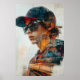 Capture a essência do estilo jovem de rua com este legal retrato de dupla exposição. A face claramente visível de um jovem, por volta de 16 anos, a esporcionar um boné de basebol e óculos de sol, funde-se de forma artística com uma paisagem urbana dinâmica. A cena da cidade está intricadamente tecida em suas feições e no espaço ao redor, criando uma mistura perfeita entre o indivíduo e a metrópole. Essa fusão artística incorpora a energia da vida urbana, a estética moderna e uma fronteira confiante e contemporânea. É um retrato da legal jovem onde a cidade se torna parte de sua identidade. Perfeito para o quarto de um adolescente, para a decoração moderna, ou para qualquer um que aprecie arte urbana fresca.