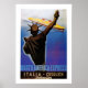Vintage ocean poster para o serviço transatlântico da linha italiana, mostrando a sua bandeira dos anos 30, a s.s. Rex passando pela Estátua da Liberdade.