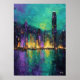 Poster Expressionist Hong Kong Skyline Neon Harbor City