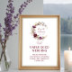 This unplugged wedding poster combines elegance and functionality with a botanical and floral design in burgundy tones. The circular floral garland provides a delicate and sophisticated visual appeal, while the central message invites guests not to use cameras or mobile phones during the ceremony, promoting an intimate and respectful experience. Its romantic and modern style enhances the elegant atmosphere of the wedding, integrating aesthetics and purpose in a harmonious way.