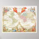 Procurando por um Poster único, que tal este Poster Extra Grande do Mapa Mundial c1694. Isto seria excelente na sua parede ou faria o presente perfeito. Provavelmente o último mapa publicado para mostrar a Califórnia como uma ilha. Vemos o mundo como era conhecido no final do século XVII, com muitas incertezas e imprecisões na América do Norte e no Pacífico. A Austrália e a Nova Zelândia estão muito incompletas, e ainda há uma sugestão do vasto continente meridional. É um mapa belamente decorado, com figuras alegóricas e formações charmosas em torno dos dois hemisférios. As figuras femininas que representam os continentes encontram-se nos quatro cantos. Outras figuras alegóricas estão no centro de cima e de baixo, e elas parecem representar as quatro virtudes fundamentais da justiça, coragem, prudência e temperança.