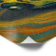 A yellow and blue Formula 1 racing helmet, covered in abstract, swirling patterns, is depicted in a thick, textured oil painting style reminiscent of Van Gogh's Starry Night.