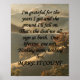 Este poderoso cartaz motivacional apresenta uma paisagem de outono de tirar o fôlego na hora dourada - colinas onduladas banhadas pela luz solar quente âmbar, folhagem vibrante de outono em laranjas, vermelhos e dourados ricos, com uma névoa suave e enevoada que adiciona profundidade e serenidade. A tipografia dramática e elegante em letra cursiva preta se destaca ousadamente contra a cena radiante, transmitindo uma mensagem profunda de gratidão e carpe diem.