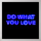 Faça o que você ama, sinal azul de neon, se você encontrar o que você ama, você nunca terá que trabalhar mais um dia da sua vida.