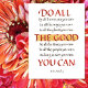 Um lembrete gentil, mas forte para "Faça o bem que puder, por todos os meios que puder; De todas as maneiras que puder, Em todos os lugares que puder, Em todas as ocasiões que puder, Para todas as pessoas que puder, o máximo que puder." Quer mudar o seu mundo? Isso vai fazer!