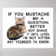 Um gato hilário vestindo bigode quer que você se apresse e faça uma pergunta ao invés de salvá-lo até mais tarde, já que ele não fica mais jovem, como você sabe!