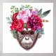 Esta design apresenta um retrato fofo de um macaco enfeitado em flores coloridas.