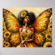 Este poster apresenta uma fada rica em melanina com asas afro-e-borboletas grandes e afro-voadoras. Ela é adornada e cercada por girassóis. Esta fada negra é uma fada de girassol, obra de arte original de Dee Claire. A bela e confiante criatura de fantasia veste um vestido amarelo, acrescentando à brilhante, ensolarada, estética de verão. Excelente para fãs de diferentes caras!