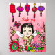 Um doce poster de conto de fadas asiático de arte folclórica com fadas e flores que diz, Amado, abençoado e adorado. Basta adicionar o nome da sua filha na área personalizada.