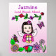 Um doce poster de conto de fadas asiático ou caucasiano com fadas e flores que diz, amado, abençoado e adorado. Basta adicionar o nome da sua filha na área personalizada.