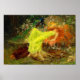 Poster com a pintura de Arthur Wardle A Fairy Tale (1895). Uma jovem de cabelo comprido veste um vestido amarelo e dorme em uma floresta verde ao lado do veado, coelho e pavão. Um belo presente para amantes de contos de fadas e entusiastas de arte ingleses!