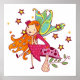 Uma fada de jardim bonito, com o cabelo laranja fluido e um vestido cor-de-rosa, senta-se num cogumelo rodeado por estrelas ouros em T-shirts de Fada do Jardim, bíblias, cobertores, cartas, bolsas, canecas, canecas, autocolantes, pegadas, travesseiros, relógios de parede e muito mais.