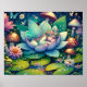 Uma fada bonita dormindo em uma flor de lótus em uma almofada de lírio com flores e fundo de cogumelo. Uma ilustração do estilo de conto de fadas.