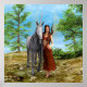 Linda fada com um unicórnio de conto de fadas numa floresta de fantasia verde. Presente perfeito para quem ama fantasia e contos de fadas