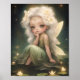Poster Fada Lilypad Cuta com Flores, Arte Whimsical