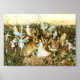 Poster com a pintura de John Anster Fitzgerald's (1819-1906) Fairy Twilight. Fadas brancas cercam um coelho marrom em um campo verde. Um presente fabuloso para amantes de contos de fadas e colecionadores de arte vitorianos!