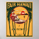 Cobrir de uma partitura musical. O nome da canção é "Fair Hawaii". Há palmeiras com um círculo interior em que se senta uma menina olhando para o pôr do sol. As cores são cor de laranja mole e verde profundo